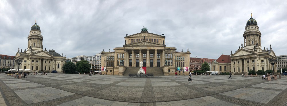 A Praça Gendarmenmarkt, construída no século XII, é uma das zonas mais bonitas de Berlim. Nos dois lados da praça podemos ver duas igrejas barrocas idênticas que se completam com uma torre coroada por uma cúpula. A igreja da zona norte, Französischer Dom (Igreja Francesa), foi construída para os huguenotes franceses que se trasladaram à zona no século XVIII. Em 1708, a comunidade luterana construiu uma igreja no sul da praça, a Deutscher Dom (Igreja Alemã), similar à francesa e, anos depois, em 1785, colocaram uma torre praticamente idêntica à francesa. A igreja alemã sofreu graves danos durante a Segunda Guerra Mundial e, em 1980, foi transformada em um centro artístico que mais tarde se tornou um museu sobre a história da democracia alemã. No museu são expostos assuntos como as Revoltas de 1848, os estados nazistas ou a RDA. Entre as igrejas está a Konzerthaus Berlim, sede da Orquestra de Berlim. Seu interior, destruído completamente durante a Segunda Guerra Mundial, teve que ser restaurado para poder ser usado novamente.