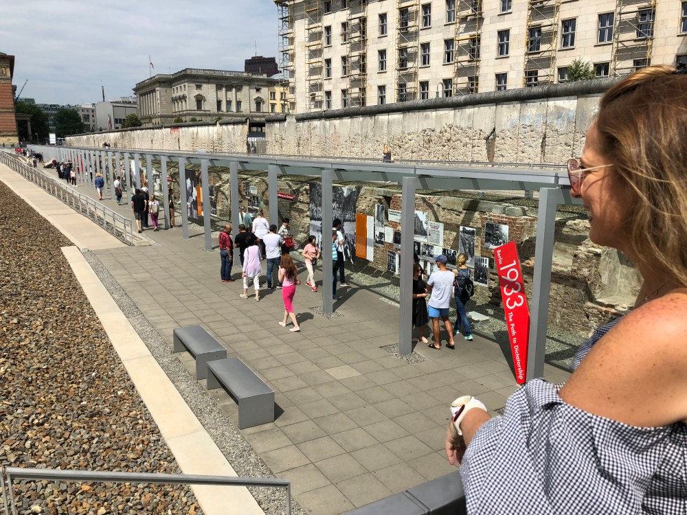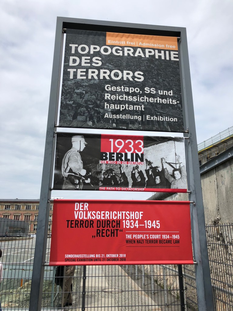 Atrás de um pedaço do muro que se mantém praticamente intacto se encontra um solar onde está a Topografia do Terror, um lugar com uma história impressionante e onde se encontra um dos trechos mais bem conservados do muro de Berlim. Em 1933, o edifício neobarroco que ocupava esse lugar se tornou a sede da temida GESTAPO, a Polícia Secreta do Estado. Os que se opunham ao regime de Hitler acabavam ali, onde eram submetidos a interrogatórios e contínuas torturas nos porões do edifício. Os textos e fotografias da Topografia do Terror detalham a sórdida história do aparelho de segurança de Hitler entre os anos de 1933 e 1945.
