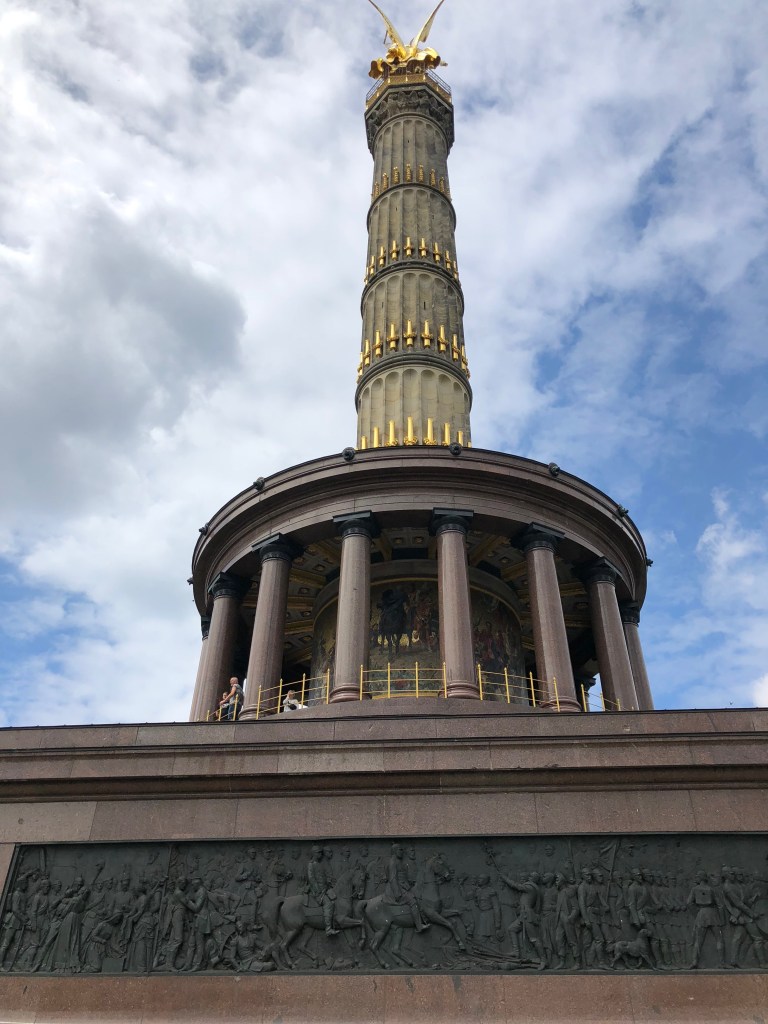 A Coluna da Vitória, desenhada por Heinrich Strack, foi construída para comemorar a vitória da Prússia sobre a Dinamarca na guerra Prússia-Dinamarca de 1864. Em poucos anos a Prússia ganhou mais duas guerras, desta vez contra a Áustria, em 1866 e contra a França em 1870/1871. Estas últimas vitórias serviram de inspiração para adicionar ao topo da coluna a estátua de Vitória, a deusa romana da vitória, que não constava nos planos iniciais. A estátua de bronze de Vitória foi desenhada por Friedrich Drake e tem 8,3 metros de altura e pesa 35 toneladas.