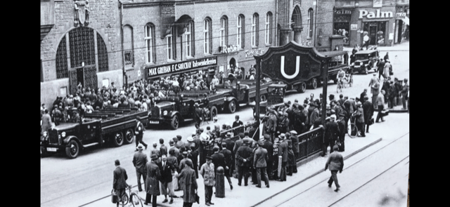 Espectadores e trabalhares dos estaleiros navais Blohm & Voss, durante o canto do hino nacional , após o discurso de Adolfo Hitler por ocasião do lançamento do navio de treinamento da marinha Alemã “Horst Wessel” – Hamburgo, 13 de Junho de 1936. Enquanto todos os presentes levantam seus braços direitos na obrigatória saudação alemã, um homem (circulo) se recusa e cruza os braços. As informações são conflitantes sobre a identidade do homem, mas provavelmente era August Landmesser.