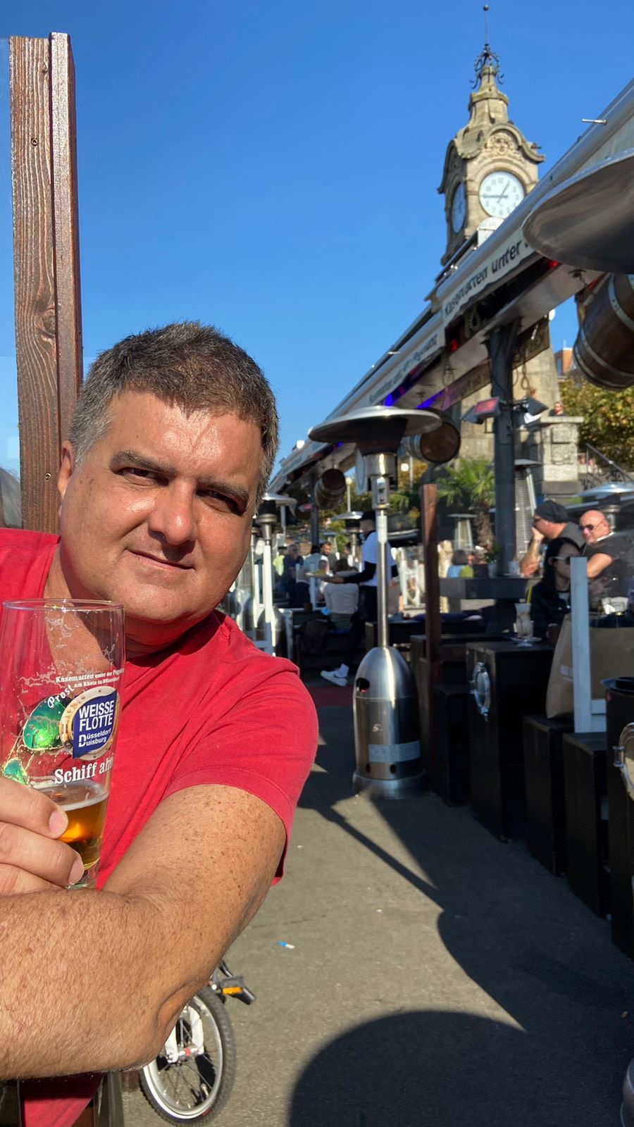 Um dos lugares que mais gostamos em Dusseldorf e que mais aproveitamos foi a Rheinuferpromenade ou Passeio do Reno que pode ser considerado um verdadeiro ponto de encontro da cidade. Por lá, turistas e moradores aproveitam o calçadão para andar de bicicleta, fazer caminhadas, participar de eventos sazonais, curtir os bares e restaurantes do lugar e até mesmo participar de um cruzeiro pelo rio. Foram muitos os navios que vimos entrando e saindo para deliciosos passeios pelo Rio Reno.