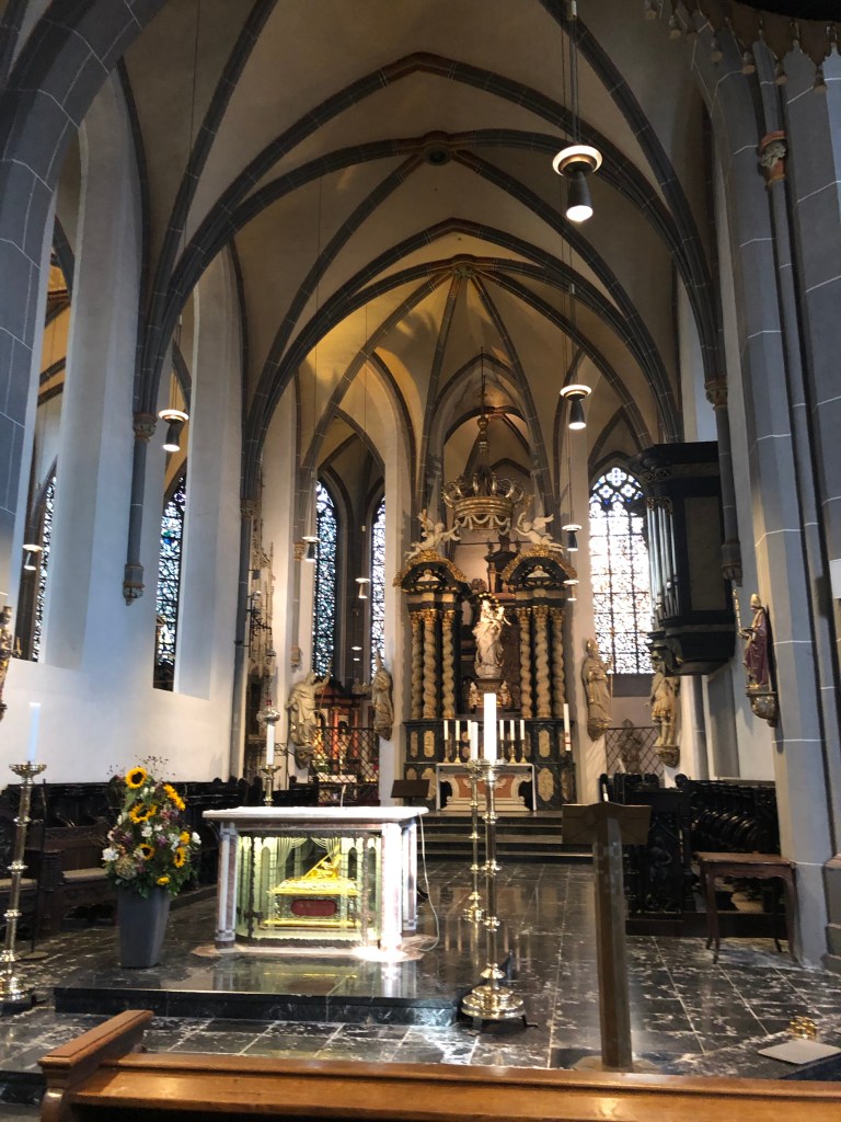 Ainda em Altstadt conhecemos a Igreja De São Lamberto – Basílica de St Lamberthus – Se trata de um dos símbolos da cidade por sua torre inclinada. É uma igreja gótica, com relíquias da patrona de Dusseldorf. A igreja está consagrada a São Lamberto, assassinado em Lieja no ano de 705 por suas crenças religiosas e cujas relíquias se conservam em um cofre que se encontram no interior do edifício. O fato é que a torre ainda não foi endireitada, uma maneira divertida de deixar claro o grande senso de humor dos alemães.