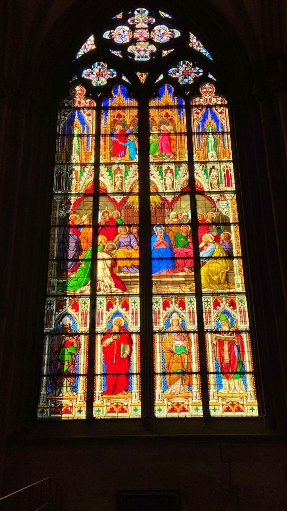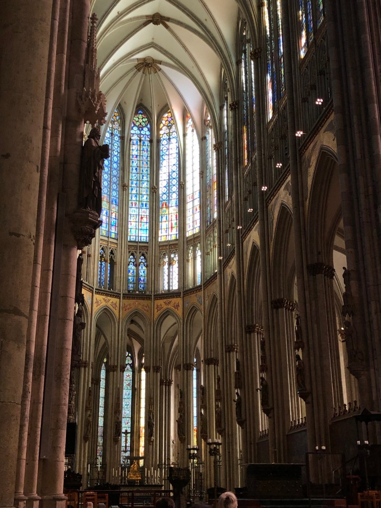 São 6.900m² de área total, com 5 naves, duas delas formando uma cruz, com 43 metros de altura, sendo que a principal possui 145 m de comprimento e 86 de largura. O Dom possui ainda 7 capelas, 10.000 m² de lindos vitrais coloridos que contam a história do Velho Testamento. O peso total da Catedral de Colônia é de 160 mil toneladas.