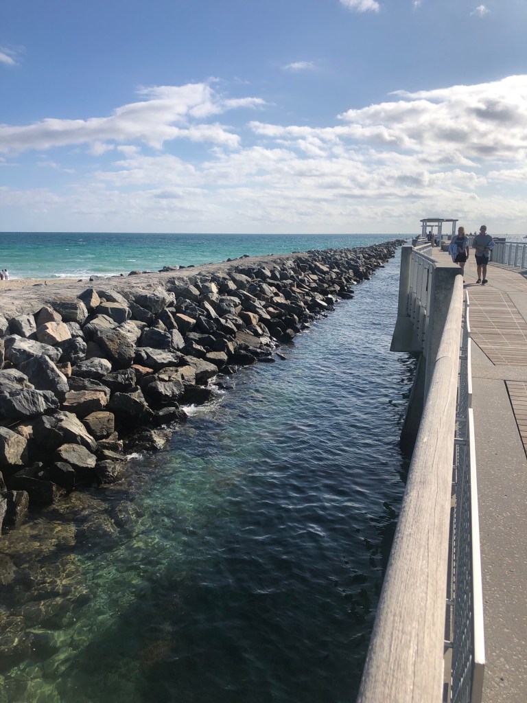 O píer é um local muito agradável para um passeio de fim de tarde e para apreciar o pôr do sol porque a vista de lá é simplesmente maravilhosa.
