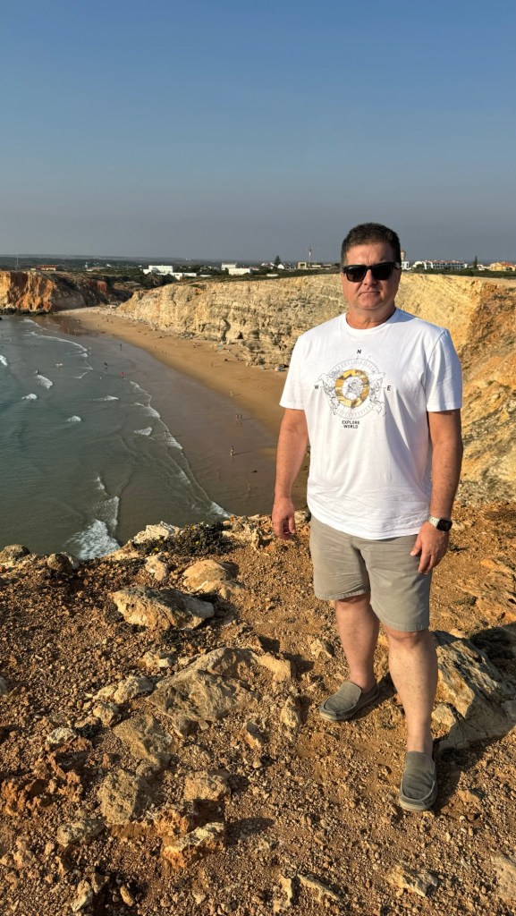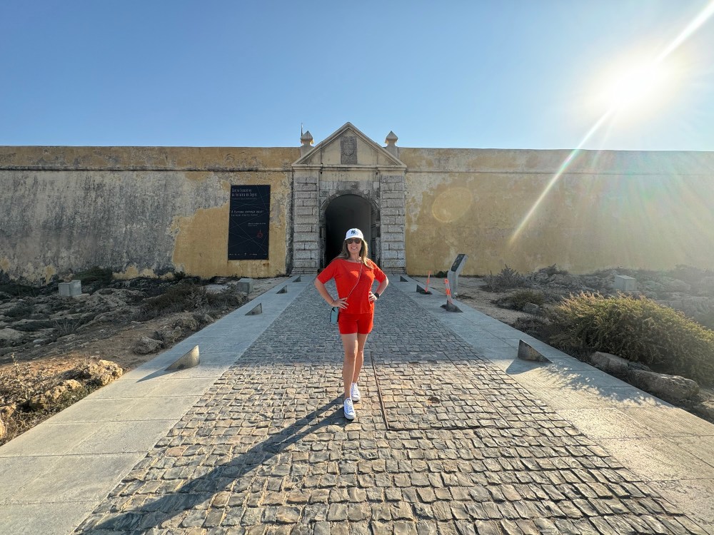 De cara fomos a Sagres, uma pequena vila localizada na ponta sudoeste de Portugal, no Algarve, famosa por sua beleza natural e rica história. É um destino que atrai tanto os amantes da natureza quanto os entusiastas da história, oferecendo uma combinação única de paisagens deslumbrantes e significativas heranças culturais. Nossa parada na cidade foi no Forte de Sagres, uma fortificação histórica que remonta ao século XV.