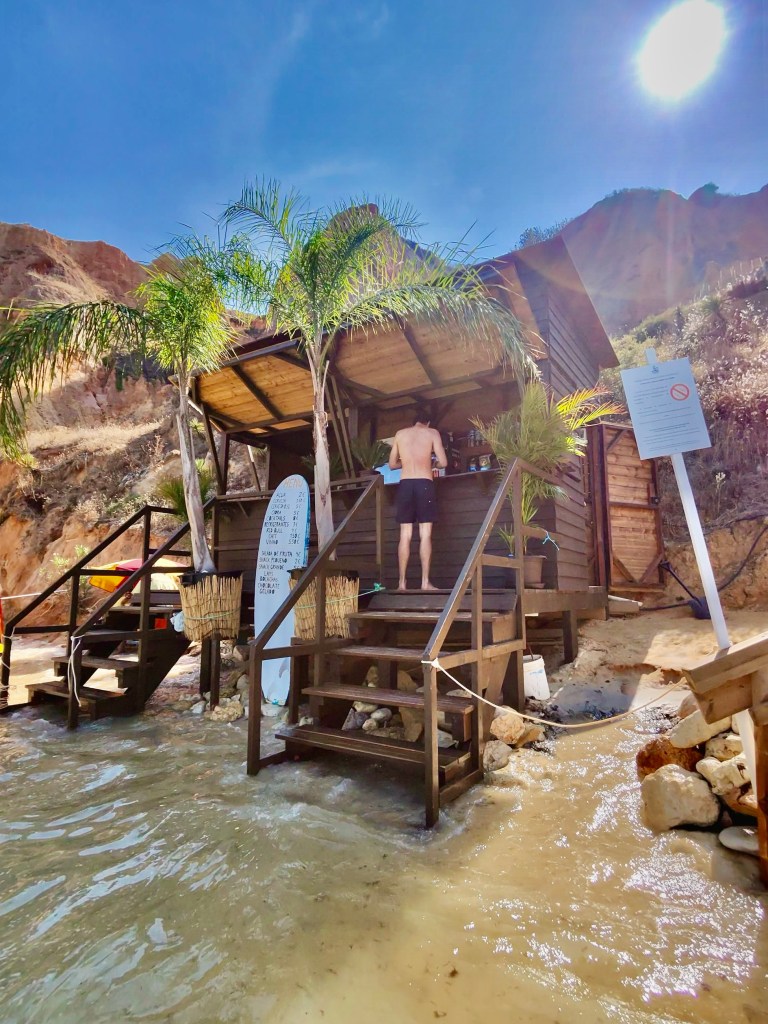 Um outro ponto alto da Praia do Camilo é o restaurante no topo da falésia onde se pode desfrutar de uma vista maravilhosa além de desfrutar de uma grande variedade de frutos do mar e bebidas diversas, tornando a experiencia na Praia do Camilo ainda mais agradável.