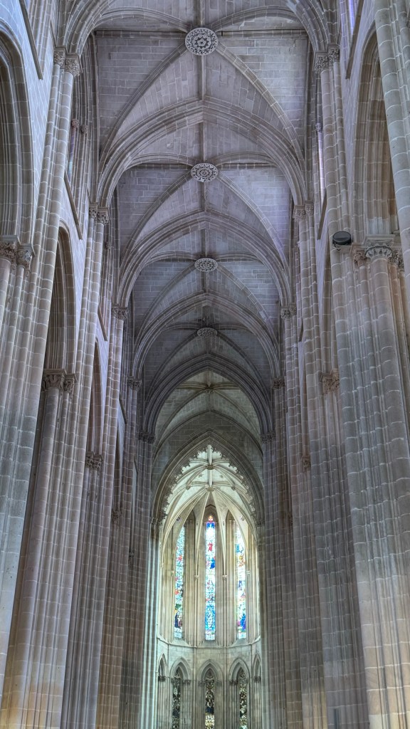 Um dos aspectos mais belos do Mosteiro da Batalha é o contraste entre os espaços fechados e as áreas abertas.