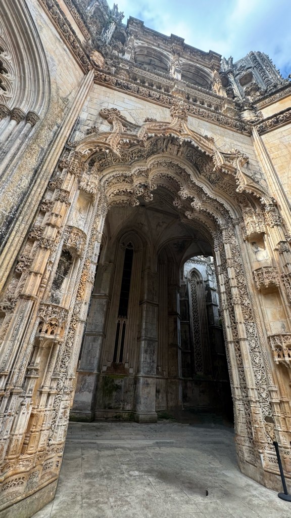 O que mais me chamou atenção na Capela Imperfeita foram os detalhes esculpidos nas colunas e nos arcos que cercam o local. Mesmo inacabada, a riqueza dos ornamentos e a complexidade das formas geométricas demonstram a ambição do projeto. Há uma certa poesia na incompletude da capela, como se a obra estivesse em um diálogo constante com o tempo e a natureza.