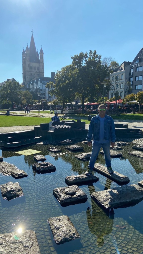 Essa foi, sem dúvida nenhuma, a região que mais gostamos na cidade de Colônia. Nós almoçamos nessa pracinha charmosa que fica às margens do Rio Reno e proporciona lindas vistas. A praça é formada por casinhas coloridas e parecidas que foram construídas “coladas” umas nas outras.