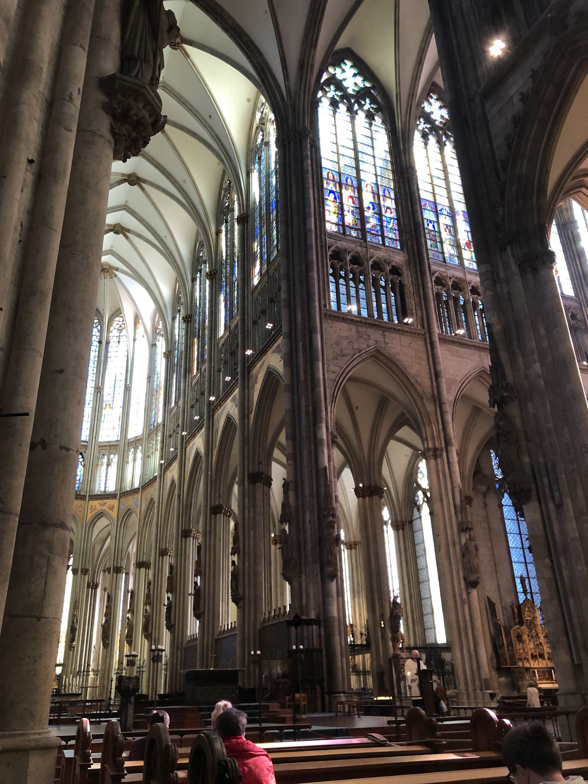 São 6.900m² de área total, com 5 naves, duas delas formando uma cruz, com 43 metros de altura, sendo que a principal possui 145 m de comprimento e 86 de largura. O Dom possui ainda 7 capelas, 10.000 m² de lindos vitrais coloridos que contam a história do Velho Testamento. O peso total da Catedral de Colônia é de 160 mil toneladas.