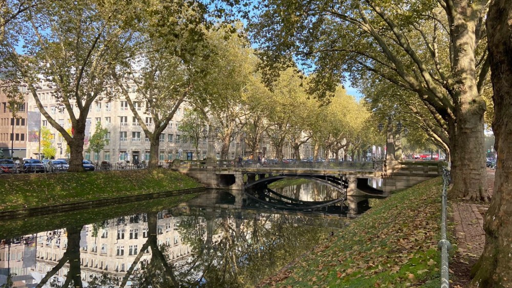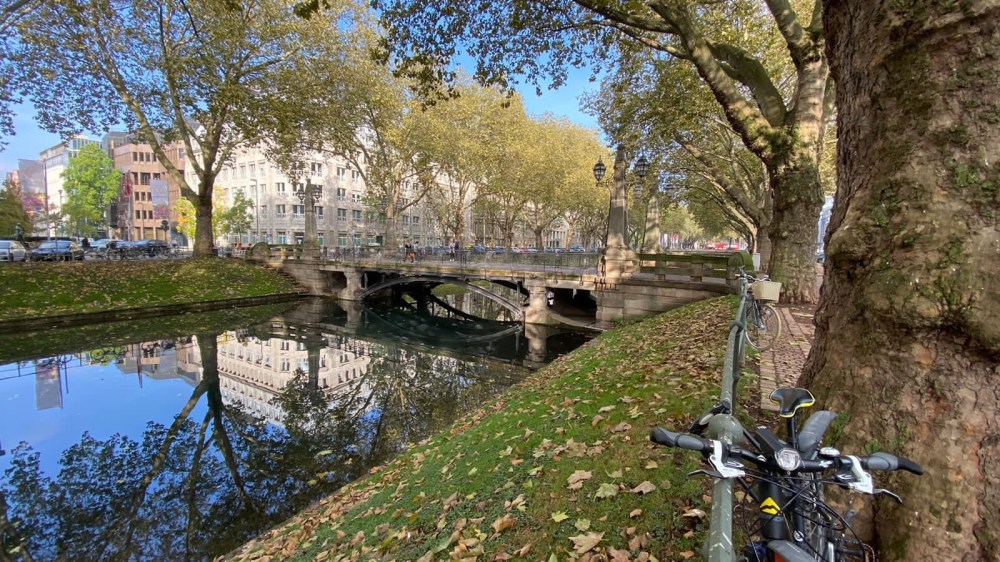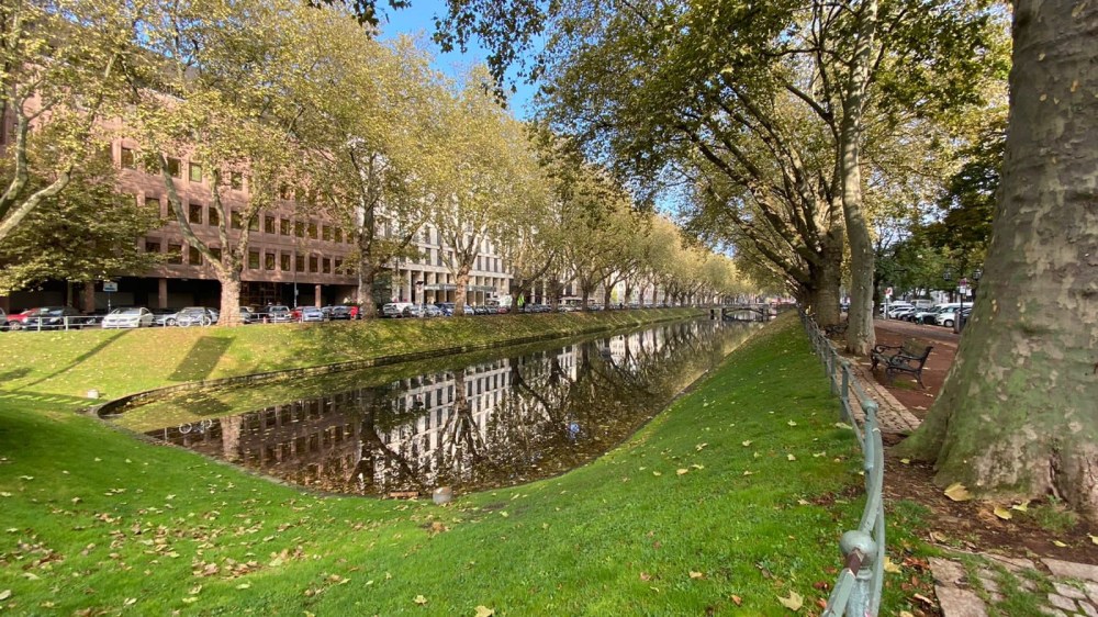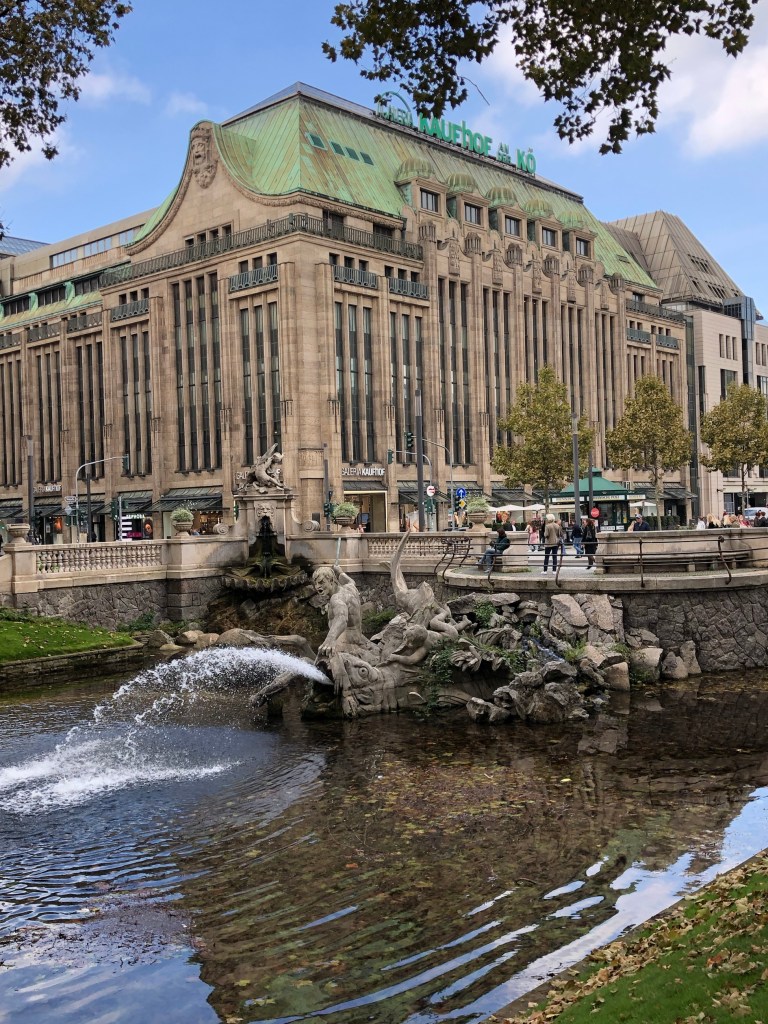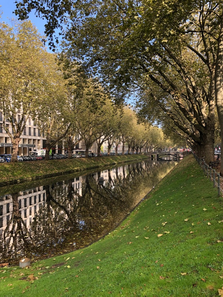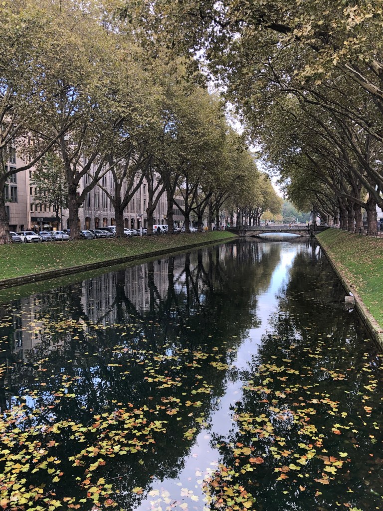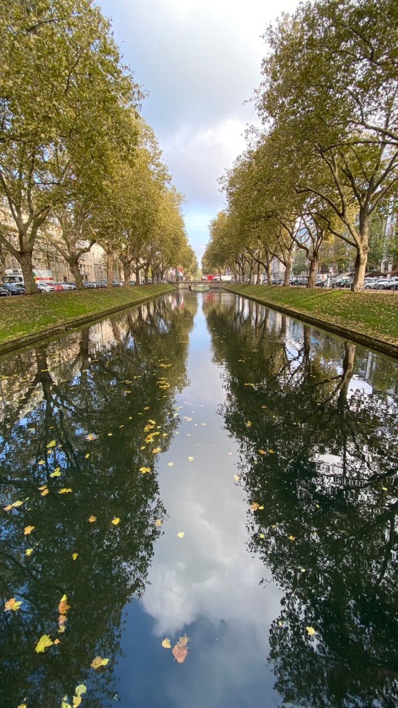 Nosso passeio começou na Kunigsallee, a famosa avenida de Düsseldorf, na região central, muito procurada como um destino de compras, rodeada por lojas de varejo de luxo e showrooms de moda. Porém, o seu maior destaque, sem dúvidas, é o belíssimo canal que acompanha a sua extensão, e o paisagismo caprichado que rende inúmeras e maravilhosas fotografias.
