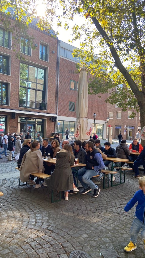 Aos arredores da Markplatz, caminhamos por diversas ruas repletas de restaurantes e cervejarias, onde aproveitamos para conhecer a cervejaria Uerige.