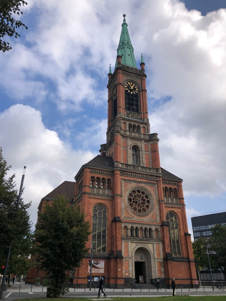 Uma das nossas paradas neste região foi para conhecer o belíssima Johannes Church que fica em uma praça encantadora com o Palácio da Justiça de Dusseldorf bem em frente.