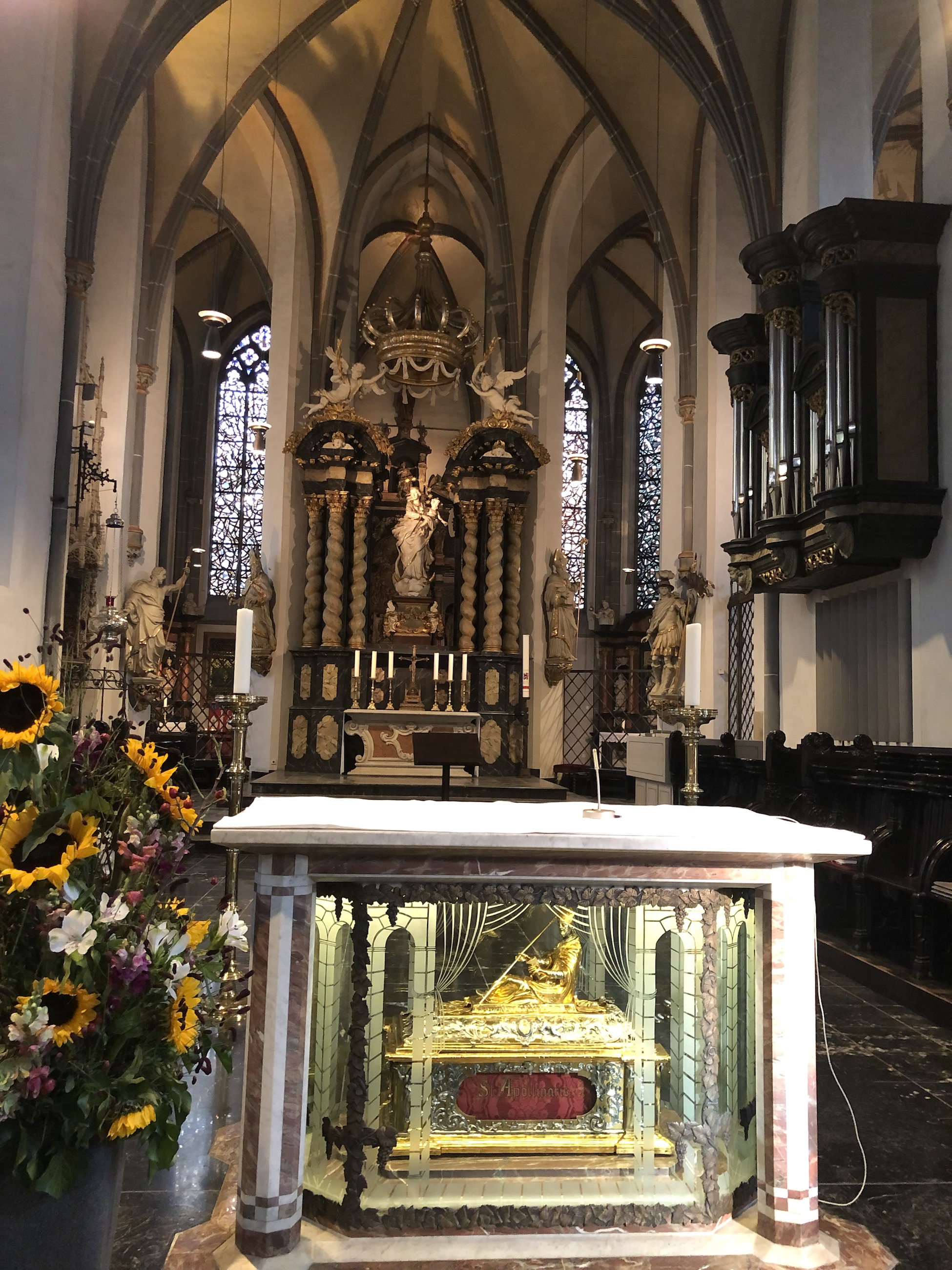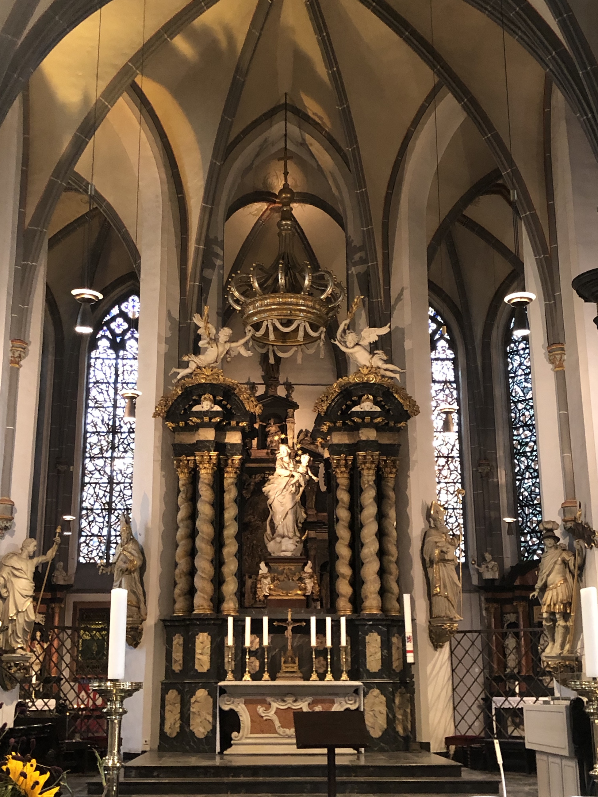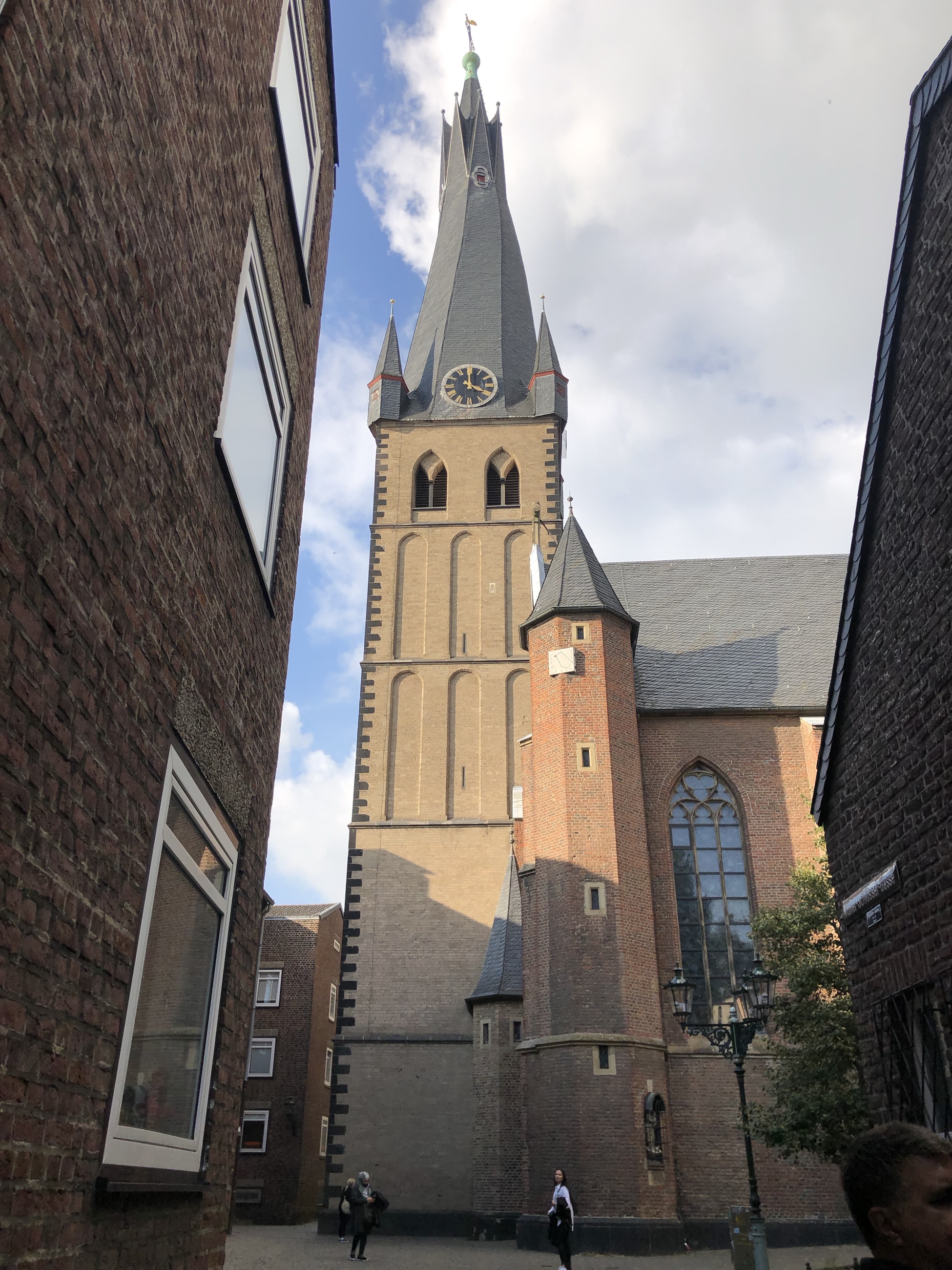 Ainda em Altstadt conhecemos a Igreja De São Lamberto – Basílica de St Lamberthus – Se trata de um dos símbolos da cidade por sua torre inclinada. É uma igreja gótica, com relíquias da patrona de Dusseldorf. A igreja está consagrada a São Lamberto, assassinado em Lieja no ano de 705 por suas crenças religiosas e cujas relíquias se conservam em um cofre que se encontram no interior do edifício. O fato é que a torre ainda não foi endireitada, uma maneira divertida de deixar claro o grande senso de humor dos alemães.