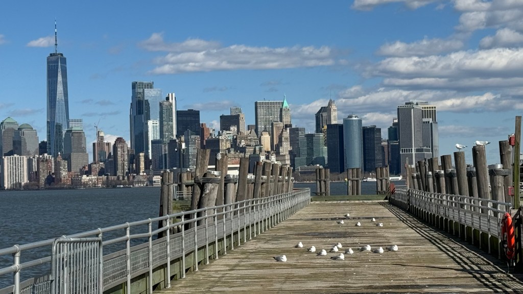 O passeio começa no Battery Park, localizado no sul de Manhattan, um bonito parque de onde partem os barcos para a ilha onde fica a estátua.