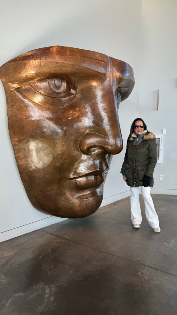 “This full-scale copper replica of the face of the Statue of Liberty was made using the same technique as the original.”
