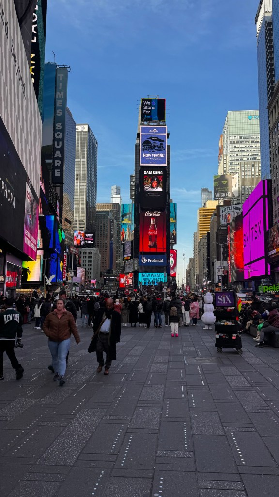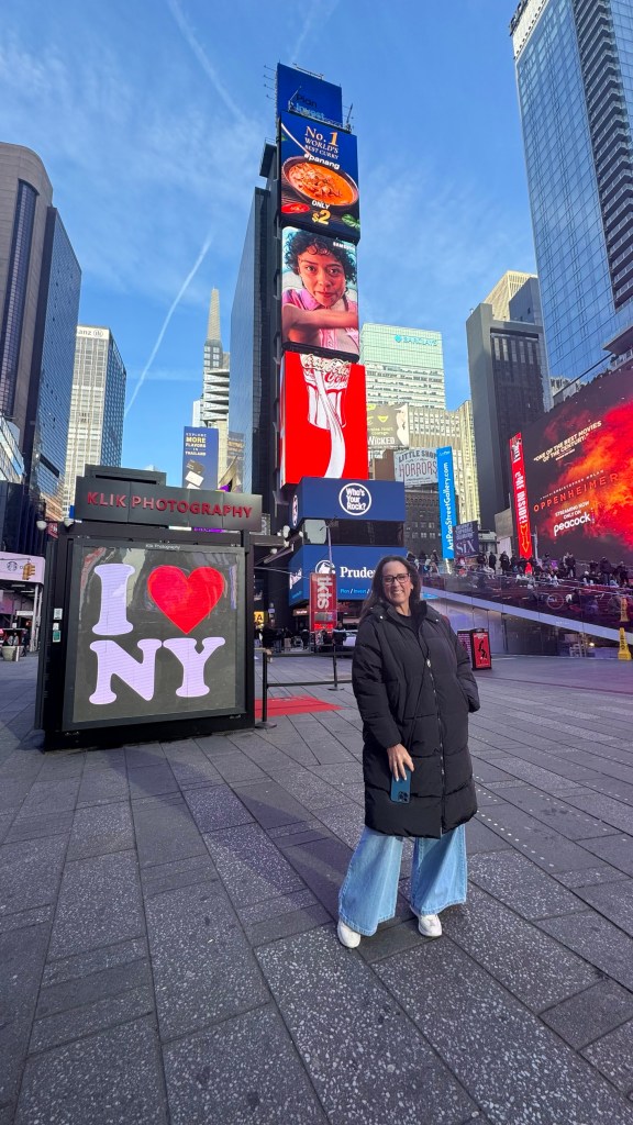 Chegamos em Nova York no dia 26 de fevereiro de 2024, estava frio, temperatura marcando 1º, seguimos para o nosso hotel no coração na cidade, estávamos bem localizados a poucos metro da Broadway e coladinhos na Times Square.
