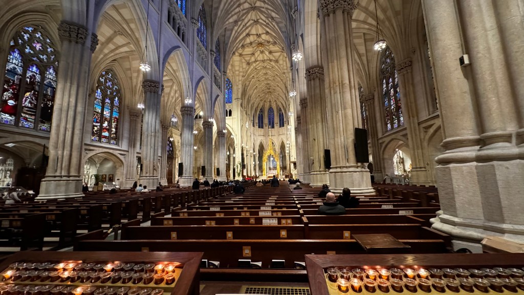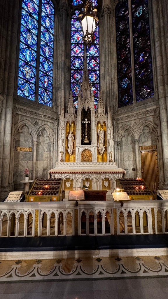Continuando pela 5º avenida, por entre as lojas e vitrines milionárias, encontramos a maravilhosa Catedral de St. Patrick.