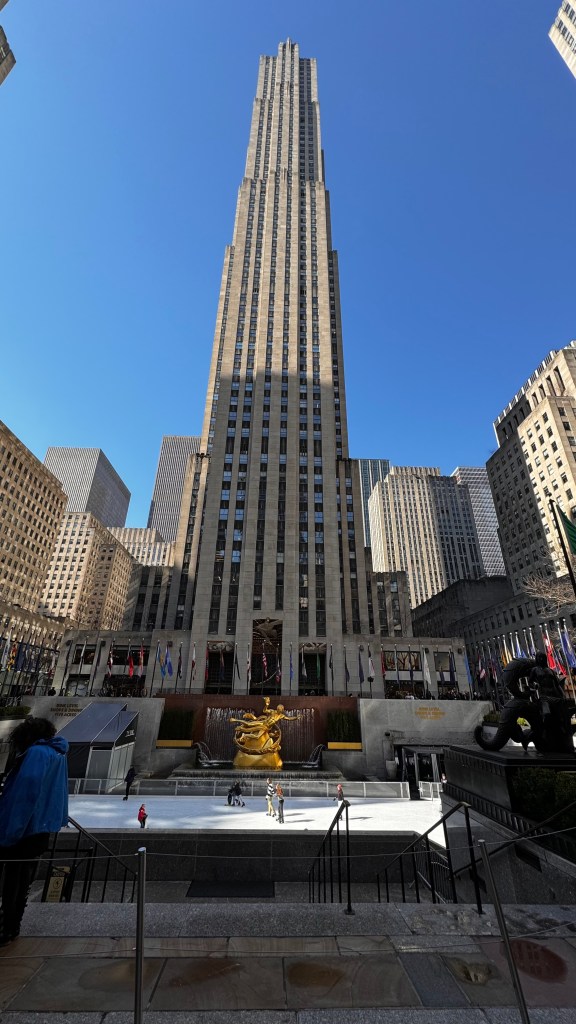 Rockefeller Center – o centro empresarial reúne lojas, restaurantes, edifícios e áreas de lazer. É nele que fica o Top of the Rock, observatório com uma vista espetacular de Manhattan, e onde, há uma pista de patinação muito movimentada durante o inverno. É um bom lugar para passear, fazer algumas compras e tirar fotos!