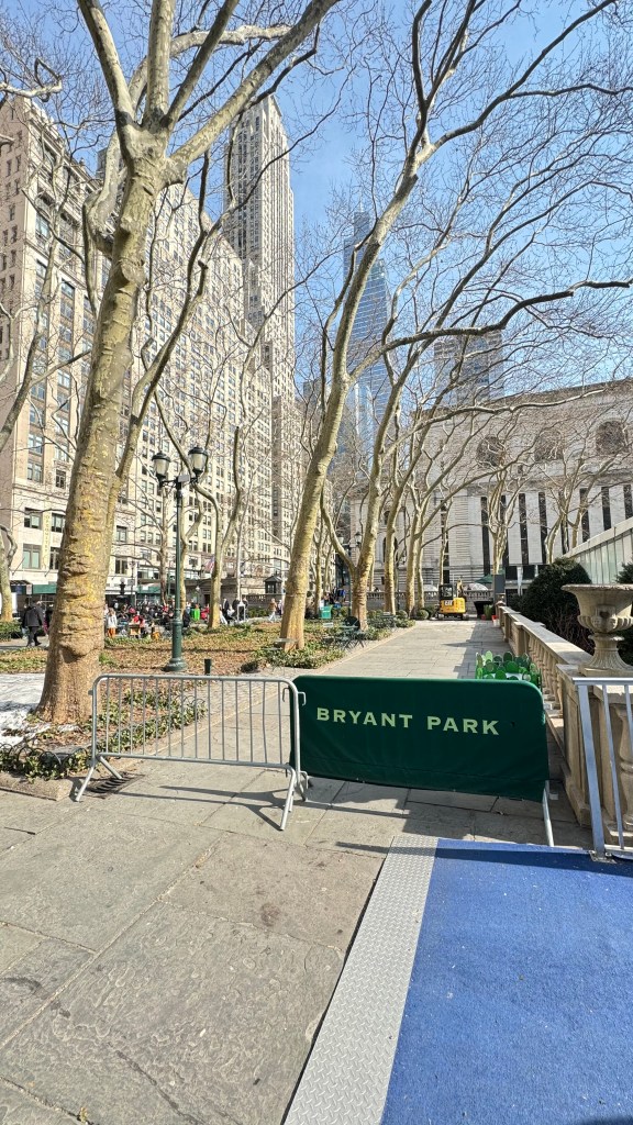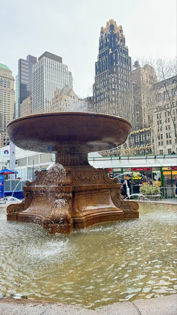 E mais uma surpresa no centro de Manhattan foi o Bryant Park, famoso pela fonte Josephine Shaw Lowell (que fica totalmente congelada no inverno), o parque está localizado entre as ruas 40th e 42nd com a 6th e 7th avenues, e costuma ser muito frequentado como alternativa ao Central Park.