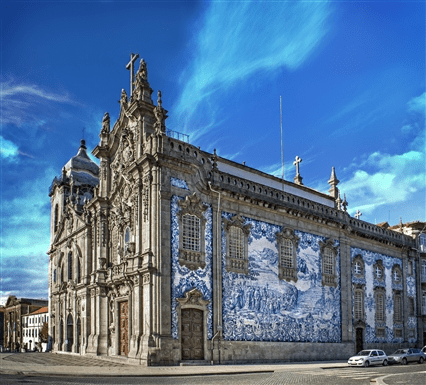 Construída entre 1756 e 1768, a Igreja do Carmo é famosa por sua impressionante fachada lateral decorada com azulejos azuis e brancos, um dos símbolos da arte portuguesa. O painel de azulejos, projetado por Silvestre Silvestri em 1912, retrata cenas da fundação da Ordem Carmelita e é um dos pontos mais fotografados da cidade.