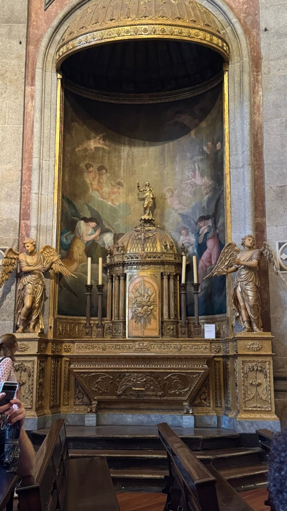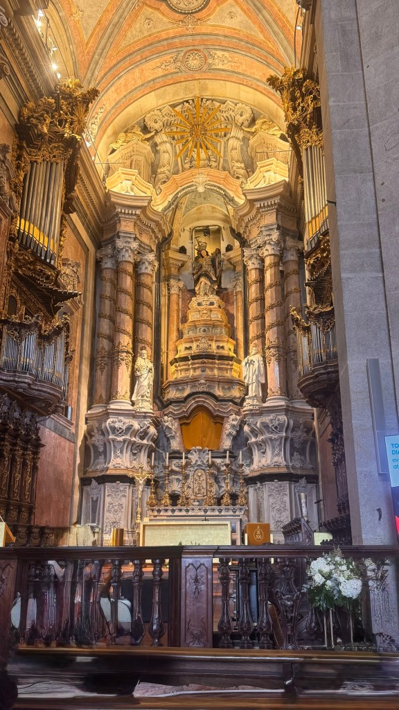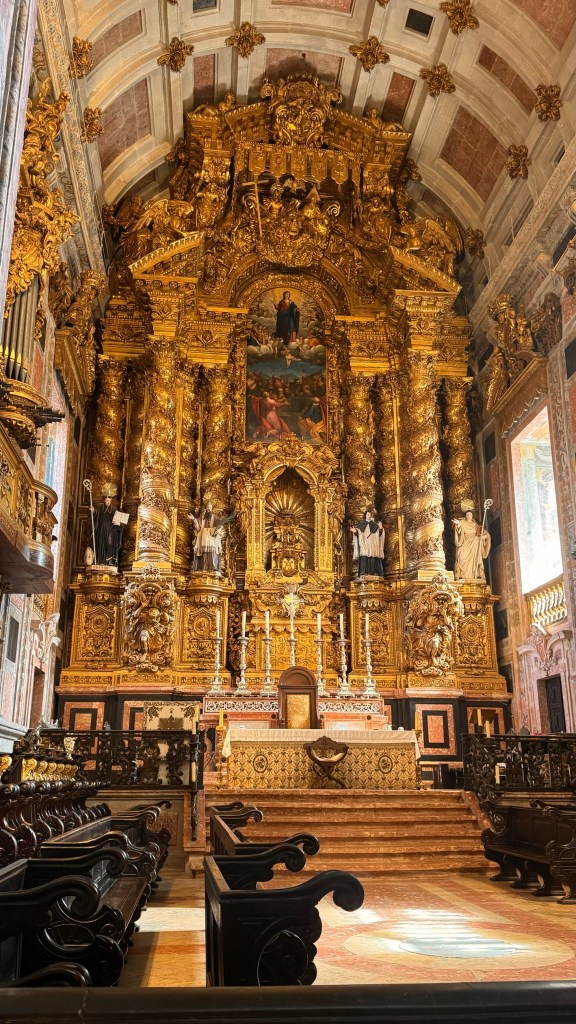 O interior da Igreja do Carmo é tão impressionante quanto o exterior. Os altares, ricamente decorados em talha dourada, são exemplos perfeitos do esplendor do barroco. O teto abobadado e os detalhes escultóricos criam uma atmosfera de reverência e beleza que nos transporta para outra época.