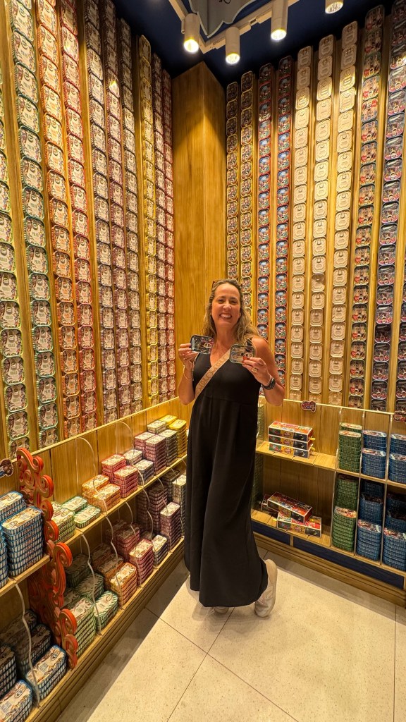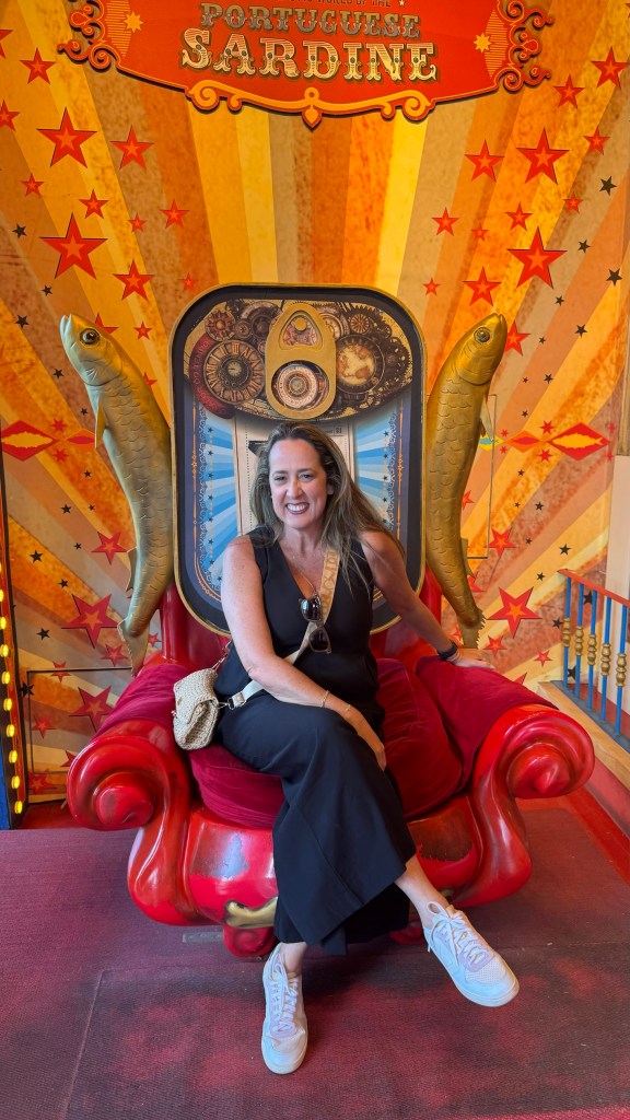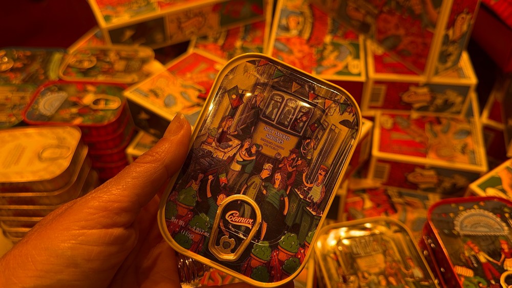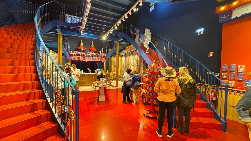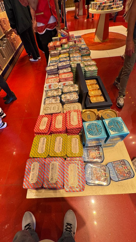Trata-se de uma loja da marca Comur – Fábrica de Conservas, uma das mais tradicionais de Portugal. Mas não é uma simples loja de conservas! O espaço é temático, com um ambiente inspirado no circo e na tradição portuguesa, repleto de cores vibrantes, iluminação chamativa e decoração extravagante. Ao entrar, você se sente em um verdadeiro parque de diversões das sardinhas!