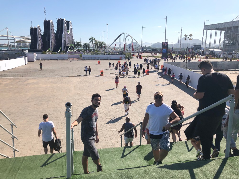 A chegada a cidade do rock foi tranquila, já no portão de entrada pegamos uma fila bem grande, mas super bem organizada e que andou muito rápido, em menos de 20 minutos já estávamos pisando no rock in rio.