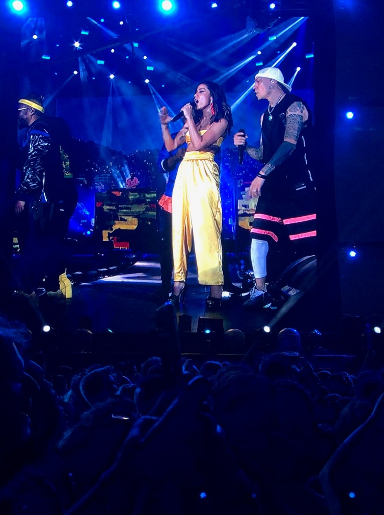As 22:20hs, o Black Eyed Peas entrou no palco. O show foi eletrizante, na minha opinião o mais dançante da noite, com muitos sucessos da banda animando o publico. A surpresa foi as duas musicas “eXplosion e Don´t Lie que Anitta cantou junto com a banda. Foi incrível.