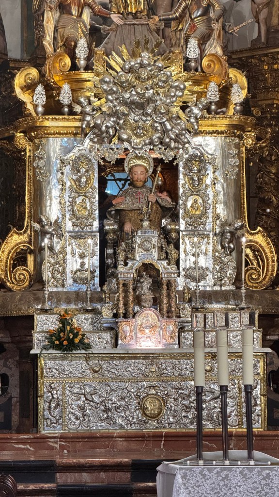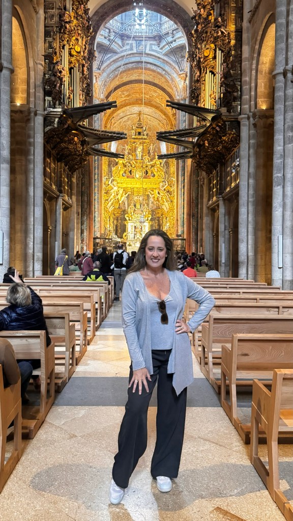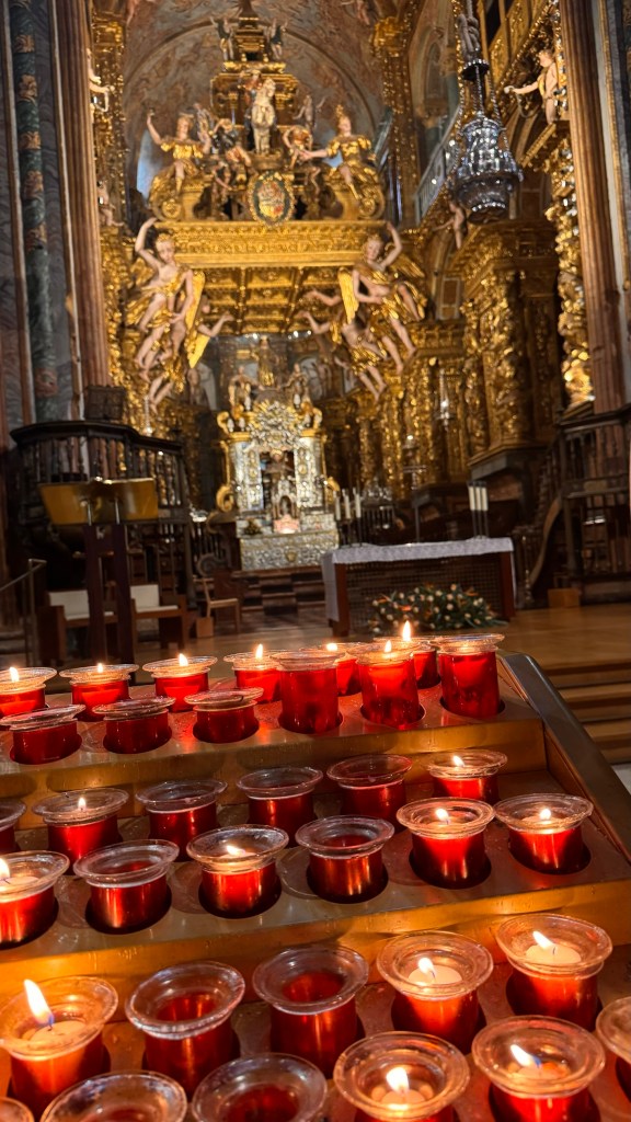 Dentro da catedral, a beleza do Pórtico da Glória e a atmosfera espiritual eram impressionantes. Um dos momentos mais especiais foi visitar a cripta onde, segundo a tradição, estão os restos do apóstolo Tiago. A sensação de estar em um lugar tão significativo para tantos peregrinos ao longo dos séculos foi realmente emocionante. Infelizmente, o famoso botafumeiro não estava em funcionamento no momento da minha visita, mas ainda assim a experiência foi inesquecível.