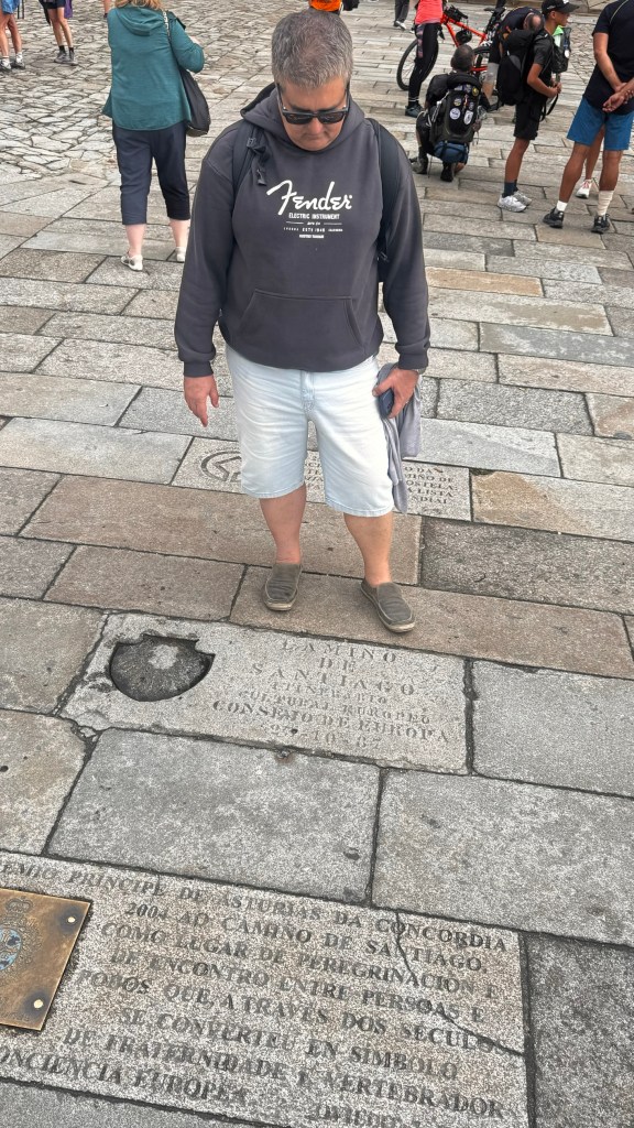 O ponto alto da visita foi, sem dúvida, a Catedral de Santiago de Compostela. Ao chegar à imponente Praça do Obradoiro, paramos por um momento para admirar a grandiosidade da sua fachada barroca. Era impossível não sentir a emoção do lugar, especialmente ao ver peregrinos que, depois de dias ou até meses de caminhada, chegavam ali para completar sua jornada.